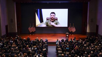 Zelenski, que intervino por videoconferencia, no es el primer líder extranjero que habla al Capitolio —antes lo han hecho un puñado de franceses y británicos, la alemana Angela Merkel, el papa Francisco o Nelson Mandela—, pero pocas intervenciones alcanzan el calado histórico de la intervención de la mañana de este miércoles, llevada a cabo en el vigésimo primer día de guerra. Ochenta años atrás, el 26 de diciembre de 1941, fue Winston Churchill quien tocó a rebato ante los legisladores de Washington. Estados Unidos acababa de entrar en la II Guerra Mundial, a raíz del bombardeo de la base naval estadounidense de Pearl Harbor (Hawái) por parte de Japón.