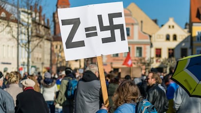 Dos Estados alemanes han alertado ya de la exhibición, en manifestaciones y otros actos públicos, de la zeta blanca que empezó a aparecer pintada en los vehículos militares rusos al inicio de la invasión de Ucrania. Hay distintas teorías sobre su significado —para algunos expertos podría ser una abreviatura de la frase “por la victoria”; otros opinan que podría equivaler a “Oeste’”—, pero de lo que no hay duda es de que se ha convertido en una muestra de apoyo a la invasión de Ucrania.