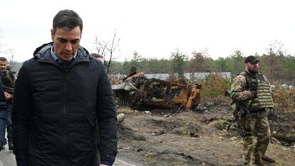 Desde Kiev se desplazaron a Borodianka, una de las localidades en los alrededores de Kiev marcadas por la destrucción y los indicios de crímenes de guerra durante el periodo en el que estuvieron ocupadas por las tropas rusas. Tras pasear por sus calles, el presidente español se declaró “conmovido” por “el horror y las atrocidades de la guerra de Putin”, según ha publicado en un mensaje de Twitter. Allí ha hablado con el alcalde interino, Georgy Yerko, y con unos ancianos sobre los crímenes allí cometidos y la importancia de que sean juzgados, según fuentes de su delegación.