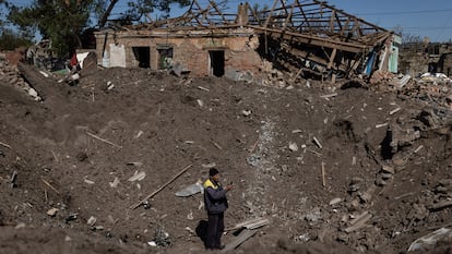 Artur los observa trabajar mientras apura un cigarrillo antes de regresar al patio de casa de su cuñada, Natalia, a limpiar escombros. Sus dos hijas adolescentes recogen un par de zapatos tirados en la tierra. La rueda de un cochecito. Un peluche. El ataque ha destrozado la vivienda de Natalia, que vivía sola con sus cuatro hijos. La familia se marchó a casa de su suegra con los estruendos de la primera explosión. Si no, no estarían vivos, dice. “No sabemos nada. No tenemos ninguna información. ¿Por qué hay ataques contra Malotaranivka? Aquí no hay militares”, dice la mujer encogiéndose de hombros. Pese a las evidencias, el Kremlin insiste en que no ataca a civiles y que se centra en las infraestructuras militares y los depósitos y envíos de armas a Ucrania desde el exterior.