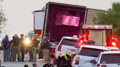El primer registro fue en el pequeño pueblo texano de Encinal, a media hora de la frontera con México. Eran las 14.50 del lunes y un camión de carga rojo marca Volvo pasaba por el punto de inspección de la patrulla fronteriza. El conductor, gorra negra y polo a rayas, fue captado por las cámaras de seguridad mientras hablaba con los policías sin bajarse del vehículo. En ese momento, el remolque ya iba cargado con 67 personas que se estaban jugando la vida al cruzar la frontera de modo clandestino. Una media hora después, el tráiler pasó otro control más adelante, en el pueblo de Cotulla, sin que los agentes detectaran tampoco nada raro. El siguiente registro es de las 18:20: el camión ha sido abandonado en una carretera perdida a las afueras de San Antonio. Cuando la policía abre las puertas traseras, 47 migrantes ya habían muerto por hacinamiento, asfixia y deshidratación. Seis más fallecerían en el hospital los días siguientes.