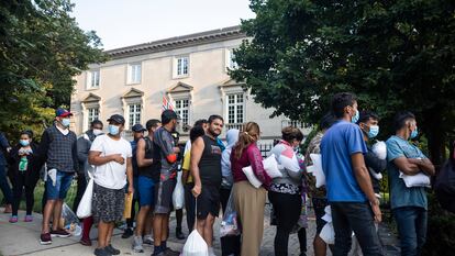 Migrantes hace cola frente a la residencia de Kamala Harris, este jueves, en Washington. Foto: JIM LO SCALZO (EFE) | Vídeo: Reuters