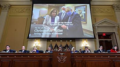 La última sesión de la comisión de investigación del 6 de enero dejó como principal noticia la citación al expresidente Donald Trump para ser interrogado en relación con el asalto al Capitolio. La parte más espectacular, sin embargo, fue la proyección de vídeos inéditos de cómo vivieron los líderes del Congreso la insurrección desde dentro. “Es simplemente horrible”, se oye decir en los vídeos a Nancy Pelosi, presidenta de la Cámara de Representantes y principal protagonista de las grabaciones.