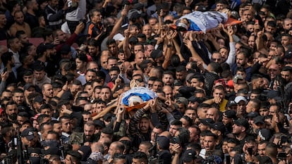 El ejército israelí ha efectuado en la madrugada de este martes varias incursiones en el territorio ocupado de Cisjordania en las que ha matado a seis palestinos, entre ellos, Wadea al Huh, líder de La Guarida de los Leones, la nueva milicia de la ciudad de Nablus, convertida en su principal dolor de cabeza. En la redada en la casba de Nablus —la mayor del año en Cisjordania― perdieron la vida cinco palestinos, más de 20 resultaron heridos y las fuerzas israelíes detonaron un escondrijo para elaborar explosivos. Miles de personas han participado en la procesión fúnebre, en la que se transportaron los cadáveres entre gritos de venganza y cantos patrióticos. Los soldados israelíes mataron además a un adolescente en Nabi Saleh, un poblado al norte de Ramala, según el Ministerio de Sanidad palestino.