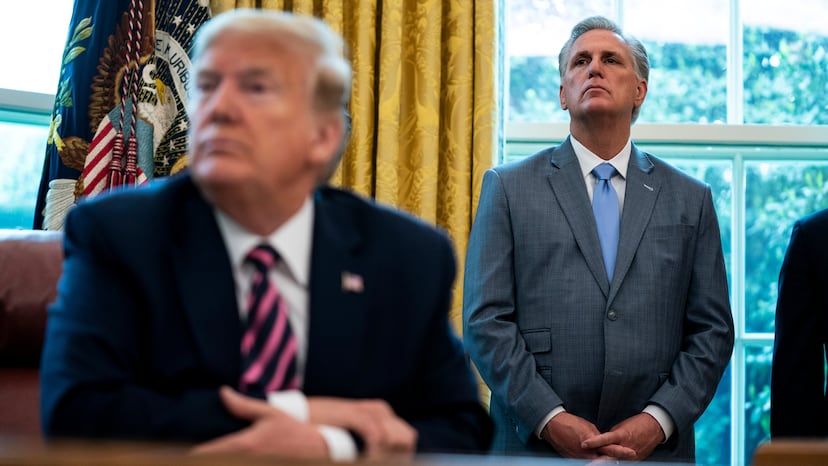 El republicano Kevin McCarthy, junto al entonces presidente estadounidense Donald Trump, en la Casa Blanca, en abril de 2020. Foto: POOL (GETTY IMAGES) | Vídeo: EPV