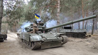 El principal suministrador, involuntario, de blindados para Ucrania ha sido Rusia. Desde finales de marzo, cuando las tropas del Kremlin empezaron a batirse en retirada en Kiev y sus provincias vecinas, las Fuerzas Armadas ucranias habrían capturado cerca de 500 tanques rusos, además de otros vehículos y armamento. Andrii es teniente, tiene 32 años y lidera un pelotón que lucha con un T-64 de la compañía de Dvorkin. Su misión el pasado jueves era intentar reparar un T-72 obtenido como trofeo de guerra a los rusos. “Solo entre un 10% y un 20% de los tanques que nos dejan los rusos pueden volver a utilizarse para combatir, están en condiciones muy malas. En cualquier momento pueden estropearse, pero también los nuestros. La maquinaria soviética es muy pobre”, señala Andrii.