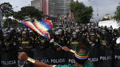 En el punto más álgido del conflicto, que se originó el pasado 7 de diciembre tras el intento fallido de autogolpe de Pedro Castillo, no hay visos de las autoridades ni de los medios de comunicación por desescalar la violencia. A diferencia del primer día, este viernes la mayoría de los protestantes se dirigió hacia el centro de Lima en lugar de esparcirse por otros distritos. Se concentró en la plaza Bolognesi y en el Parque Universitario. A sabiendas de que el objetivo de la ciudadanía era dirigirse hacia el Congreso, la Policía redobló su despliegue y formó un cordón inexpugnable en la avenida Abancay, que quedó sumida en el humo tóxico de las bombas lacrimógenas durante varios pasajes de la tarde y la noche. Otra vez, la protesta no logró su meta. Según la Defensoría del Pueblo, se registraron una treintena de heridos.