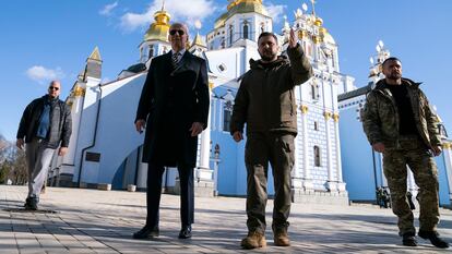 Con Zelenski, Biden mantuvo “una detallada conversación sobre los tipos de pasos que se van a necesitar en las próximas semanas y meses por parte de Estados Unidos y los socios internacionales en el G-7, la OTAN y otros lugares para garantizar que Ucrania tiene lo que necesita para mantener el nivel de esfuerzo” visto “a lo largo del año pasado, y aún más”, explicaba el consejero de Seguridad Nacional de la Casa Blanca, Jake Sullivan, este martes. Sullivan fue uno de los pocos funcionarios que acompañó al presidente estadounidense en su desplazamiento a Kiev.