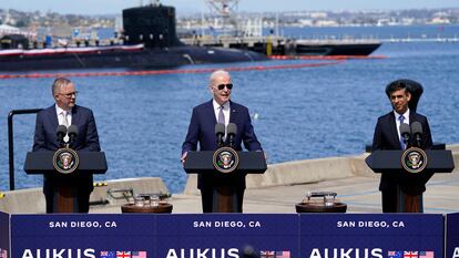“Nuestro acuerdo sobre Aukus es parte de nuestro compromiso compartido con un Indo-Pacífico libre y abierto”, ha sostenido Biden en una breve comparecencia en la base militar —ante un submarino nuclear estadounidense- junto a Sunak y Albanese para anunciar el proyecto, que ya ha recibido las críticas de China. En ruta hacia San Diego, su consejero de Seguridad Nacional, Jake Sullivan, había dado a conocer que Biden “ha indicado su disposición a mantener una conversación telefónica con el presidente chino, Xi Jinping, una vez ha concluido la Asamblea Nacional Popular”, la sesión legislativa anual en Pekín. Una conversación que buscaría reducir las tensiones entre los dos grandes rivales, agravadas desde que Washington abatió un globo chino que había cruzado su territorio.