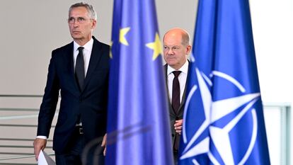 La visita de Stoltenberg a Berlín coincide con la celebración de las maniobras Air Defender, el mayor ejercicio aéreo de la historia de la OTAN, coordinadas por Alemania. Aviones y tripulación de 25 países surcan los cielos germanos durante 10 días para ensayar la respuesta a un ataque a un país miembro de la Alianza. Berlín acaba de aprobar su primera estrategia de seguridad nacional, que consagra su compromiso con la OTAN y reitera que, a partir de 2024, su gasto en defensa alcanzará el 2% del producto interior bruto (PIB) que exige la organización.