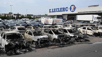 Hay preocupación en el Elíseo y el Gobierno. Y un mensaje: ni Francia se acerca a un precipicio, ni esto sucede solo aquí, pues, según la ministra, este país “no tiene el monopolio de los disturbios”. Lo repiten desde los consejeros del presidente, Emmanuel Macron, a los ministros, después de una semana en la que los franceses han asistido estupefactos y con espanto a escenas de automóviles y coches ardiendo, de asaltos a ayuntamientos, comisarías y hasta una prisión, y de centros comerciales, como este que se dispone a visitar ahora la ministra. La misión hoy: tranquilizar. A los comerciantes en particular; al mundo en general.