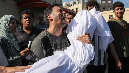 Casi la mitad de la población ha tenido que abandonar sus hogares dentro de una Franja de la que no puede salir, según cálculos de la UNRWA, la agencia de la ONU para los refugiados palestinos, que ve “probable” que la cifra aumente. Cientos de miles de personas están en otras casas —por miedo o por haber perdido las suyas (hay 1.300 edificios destruidos)—, en hospitales o en escuelas de la UNRWA, que ha admitido que por vez primera no puede garantizar que sean lugares seguros. El resto, alrededor de 600.000 personas, escapan desde el viernes hacia el sur, a raíz del ultimátum israelí. La confusión y la desesperación dominan la huida, en medio de frecuentes bombardeos que aumentaron el domingo a partir de media tarde, según se podía oír desde Sderot. Estos ataques han causado en ocho días 2.670 muertos, cientos de ellos menores de edad, según el Ministerio de Sanidad. La cifra supera la que dejó la hasta ahora mayor ofensiva (2014), en siete semanas, que incluyó una invasión terrestre.