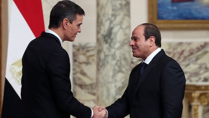 La etapa final del viaje ha incluido una reunión en El Cairo con Abdelfatá al Sisi, el mandatario egipcio, que está teniendo un papel importante en la crisis. Al Sisi agradeció mucho a Sánchez “sus posiciones sobre la situación en Gaza” y recordó que hay más de 50.000 viviendas destruidas en la Franja por los bombardeos. Al Sisi recordó que la comunidad internacional lleva 30 años hablando de la solución de los dos Estados y no ha conseguido ningún avance.