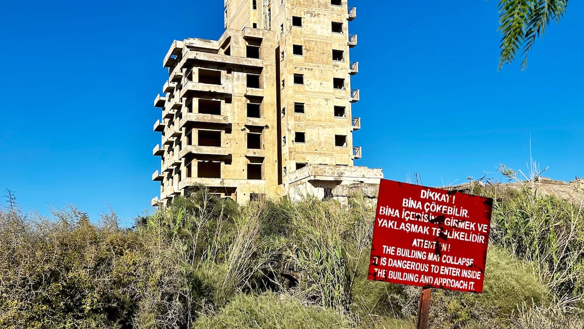 Un letrero advierte de los peligros de penetrar en los edificios de Varosha.Foto: ANDRÉS MOURENZA | Vídeo: ANDRÉS MOURENZA / OLIVIA LÓPEZ