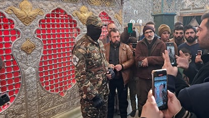 Uno de los combatientes se acerca a visitar la tumba con el rostro cubierto. De repente se ve respondiendo a preguntas sobre la voluntad del nuevo Gobierno —encargado de liderar la transición hasta marzo de 2025— de respetar a los chiíes.