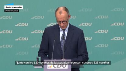 Con la relación transatlántica al borde de la ruptura, Merz quiere negociar rápido para devolver cuanto antes a Alemania al timón de Europa. En el tradicional debate postelectoral en la televisión pública, formuló una auténtica declaración de independencia respecto a EE UU que acerca Alemania a los postulados de Francia en favor de una soberanía europea. “No me hago ninguna ilusión sobre lo que sucede en América”, dijo, antes de citar el apoyo del magnate trumpista Elon Musk a AfD en la campaña electoral alemana. “Las intervenciones desde Washington no han sido menos dramáticas, ni menos drásticas, ni menos escandalosas que las intervenciones desde Moscú”, dijo. “Estamos sometidos a presiones tan masivas desde ambas partes que mi prioridad absoluta es la unidad en Europa”.
