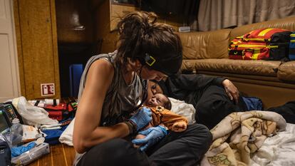Juba no era el único bebé del grupo. Además había otra niña de solo dos semanas de vida, Glory, con la que su madre se había embarcado nada más dar a luz, y dos niños de menos de 10 años. “Nunca habíamos hecho un rescate así. El suelo de la plataforma había desaparecido, y donde había se rompía al pisar encima. Cuando estábamos debajo nos caían trozos de metal en la cabeza”, cuenta por teléfono desde la nave David Lladó, coordinador de rescate de la misión. El equipo preguntó a la madre cómo se llamaba la niña, y en ese momento ella lo decidió: Juba (en su idioma se escribe Hyab). “Había otras cuatro mujeres en el grupo que la ayudaron a dar a luz”, explica Lladó.
