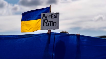 Protestas, esperanza, escepticismo (y una gigantesca bandera de Ucrania) en Anchorage para Putin y Trump