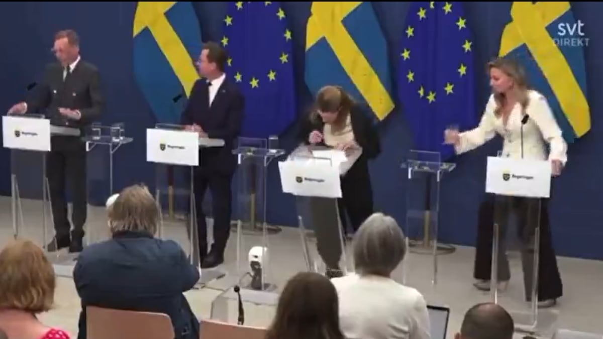 La nueva ministra de Salud de Suecia se desploma en su primera rueda de prensa oficial