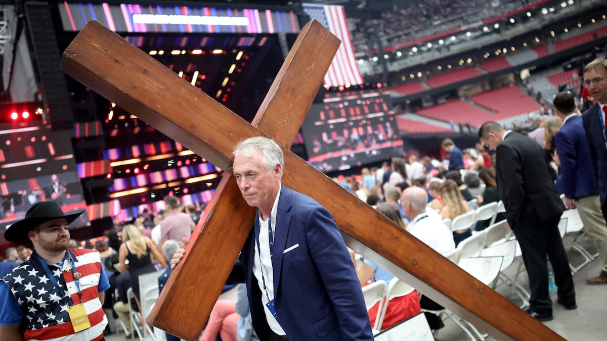 Tal vez nada hable con mayor elocuencia del pacto de mutuo aprovechamiento entre el nacionalismo cristiano y Trump, muchos de cuyos seguidores lo consideraron un “elegido por Dios” tras sobrevivir a su primer intento de asesinato, que el hecho de que uno de los eslóganes favoritos del movimiento MAGA diga: “Jesucristo es mi salvador; Trump es mi presidente”. Este domingo, la frase adornaba unas cuantas gorras de las decenas de miles de personas que hicieron cola durante horas.