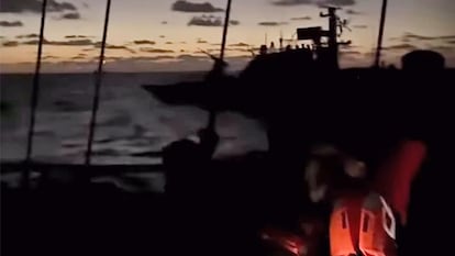 La misión, en la que viaja EL PAÍS, afirma que una embarcación militar rodeó varios barcos y desactivó de forma remota los sistemas de comunicación