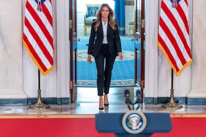 En una declaración institucional anunciada con la debida solemnidad por la Casa Blanca, la primera dama de Estados Unidos, Melania Trump, ha dicho este viernes que está en conversaciones con el presidente ruso, Vladímir Putin, para repatriar a los niños ucranios trasladados de manera forzosa a Rusia y que algunos ya han sido devueltos a sus familias. “Esto sigue siendo un esfuerzo continuo”, ha asegurado desde la Casa Blanca, en alusión al desarrollo de la gestión.