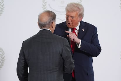 Todos los líderes pasaron uno a uno a saludar a Trump. También el español Pedro Sánchez, que se ha convertido en una especie de antiTrump y al que el propio presidente de EE UU ha dedicado palabras muy agresivas. En La Haya, en la última cumbre de la OTAN, Trump amenazó con grandes aranceles a España por negarse a aumentar al 5% el gasto en defensa, algo que después quedó en nada. Y la semana pasada, en la Casa Blanca, dijo que habría que echar a España de la OTAN por esa decisión. Pero todo quedó en nada de nuevo; y Trump y Sánchez se saludaron con normalidad, incluso con cierta cercanía, en un apretón de manos entre sonrisas y sin ningún síntoma de tensión.