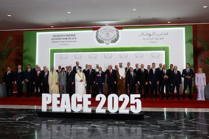 A la cita en Sharm el Sheij, el lugar donde la semana pasada se celebraron las negociaciones entre Hamás e Israel que culminaron en el acuerdo sobre la primera fase del plan de paz de Trump para Gaza, acudieron 20 líderes de todo el mundo, entre ellos los cinco grandes europeos, para ensanchar el apoyo internacional a la iniciativa para poner fin al conflicto. Durante el encuentro, los países que mediaron para el alto el fuego ―los dos organizadores, Qatar y Turquía― también firmaron un documento como garantes de la nueva hoja de ruta para el enclave palestino.