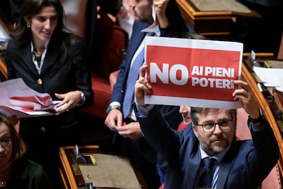 La oposición y toda la magistratura, por el contrario, creen que pone en peligro la independencia de los fiscales, pues ven un riesgo de que puedan estar sujetos a un mayor control por parte del Ejecutivo. Pero es que ni siquiera están claros los efectos de la reforma ni que no vaya a producir incluso uno contrario al deseado por el Gobierno, pues varios expertos han señalado que en realidad podría hacer de los fiscales una figura aún más poderosa. “El objetivo es debilitar la independencia de la magistratura, con la división en dos consejos, y hacer que se someta al poder”, ha clamado Elly Schlein, líder del Partido Democrático (PD), principal fuerza de la oposición. Asegura que la reforma solo sirve para que Meloni “tenga las manos libres y se coloque por encima de la Constitución”.