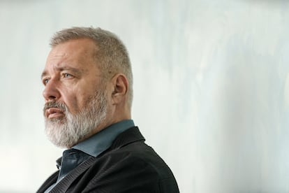 Dmitri Muratov (Samara, 64 años) habla como recién llegado de un viaje a un futuro indeseable que hoy ensombrece países que se creían inmunes. “Tengo que avisarle de que ahora mismo está entrevistando a un enemigo del Estado”, informa el periodista ruso.