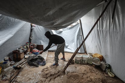 Son las consecuencias de la decisión del Gobierno de Benjamín Netanyahu de convertir Gaza en inhabitable, no solo con bombardeos, sino también con demoliciones por bulldozers y explosiones controladas, en una destrucción sin parangón desde la Segunda Guerra Mundial. La ONU cifra en 300.000 las tiendas de campaña, casas móviles y caravanas que necesita la población y cuya entrada viene bloqueando las autoridades israelíes, pese al alto el fuego que rige desde octubre. Algunas de las que usan hoy los gazatíes son más bien un conjunto de plásticos y de trozos de acero rescatado de los escombros. Lo ilustraba a la cadena Al Jazeera Hani Ziara, un padre refugiado en Ciudad de Gaza tras la destrucción hace meses de su casa: “Cuando empieza el viento, todos sujetamos los postes para evitar que la tienda se caiga”.