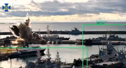 Varios drones subacuáticos ucranios han atacado e inutilizado un submarino de combate ruso este lunes en el puerto de Novorosíisk, en una de las bases principales de la Armada rusa en el mar Negro, según ha informado el Servicio de Seguridad de Ucrania (SBU) en un comunicado. “Como consecuencia de la explosión, el submarino sufrió graves daños y ha quedado fuera de servicio”, señala la nota. Moscú asegura que no se han producido ningún daño en ninguna de sus embarcaciones en Novorosíisk.