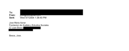 En los archivos de Epstein hay también un correo electrónico, que por la dirección que se puede entrever, remite el hijo del expresidente, en el que especifica cuál es la dirección de su padre en Faes, firmado con un escueto “Besos, Jose”. Y un mes después, se produce el segundo envío, en mayo de 2004.