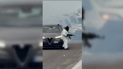 Un grupo de delincuentes ha perpetrado un espectacular asalto a un furgón blindado en el sur de Italia, en la carretera estatal que conecta las ciudades de Lecce con Brindisi, en la región de Puglia. El comando ha cortado la carretera este lunes por la mañana con coches y una furgoneta, a la que prendieron fuego después para obligar al blindado a detenerse. Tras un tiroteo con los Carabinieri, los asaltantes se dieron a la fuga.