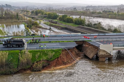 Portugal sigue sumando calamidades a una larga lista que comenzó hace dos semanas, cuando la borrasca Kristin impactó de lleno en el centro del país. Desde entonces han fallecido ya 16 personas por efectos directos o indirectos de los temporales, varias de ellas bajo tejados que se cayeron mientras intentaban repararlos. La rotura de un dique de contención provocó el desbordamiento del río Mondego, en Coimbra, y desmoronó el tramo de un viaducto de la autopista A-1, la principal arteria del país que conecta a las ciudades de la fachada atlántica, entre Lisboa y Oporto. La inundación no causó víctimas, ya que se trata de una zona sobre todo agrícola y había sido evacuada. En toda la ciudad se han desalojado de sus casas unas 3.000 personas en las últimas horas.