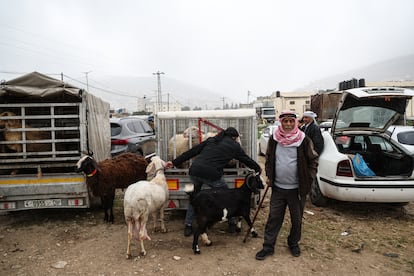Por eso, Muhamad Darahme no está “nada feliz” de vender sus cabras un 40% más caras que hace dos años. “Los colonos no nos dejan espacio para sacarlas a pastar, así que tenemos que comprar pienso, y es más caro. Además, cuando están todas juntas en el mismo sitio acaban cogiendo enfermedades”, lamenta, mientras un hombre mira la dentadura de una para ver si merece el desembolso.