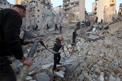 Personal de emergencias trabaja entre los escombros de un edificio derrumbado, tras un ataque israelí en el barrio de Bachoura, en el centro de Beirut (Líbano), este miércoles. Mohamed Azakir (REUTERS)Personal de emergencias y civiles trasladan a una mujer herida tras un ataque israelí sobre Beirut (Líbano), este miércoles.Stringer (REUTERS)Un niño se sienta sobre un muro junto a los escombros de un edificio bombardeo por Israel, en el barrio de Zuqaq al-Blat, en el centro de Beirut (Líbano), este miércoles. Khalil Ashawi (REUTERS)Las autoridades israelíes colocan banderas de Israel y de Estados Unidos en un lugar alcanzado por un misil iraní que causó la muerte de dos personas, en Ramat Gan este miércoles. Oded Balilty (AP)Bomberos trabajan en la extinción de un incendio en un edificio bombardeado en Beirut (Líbano), este miércoles. Bilal Hussein (AP)Un joven observa desde un balcón los trabajos de desescombro de una zona bombardeada en el distrito de Zuqaq al-Blat, en el centro de Beirut (Líbano), este miércoles. Mohamed Azakir (REUTERS)Un misil impacta en un edificio tras un ataque israelí en el centro de Beirut (Líbano), este miércoles. Hussein Malla (AP)Misiles lanzados desde Irán surcan el cielo sobre el centro de Israel, este miércoles. Ohad Zwigenberg (AP)