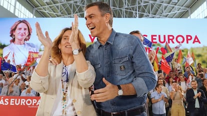 El patriotismo de partido ha impregnado al PSOE en la recta final de la campaña de las europeas con apelaciones constantes a su gestión de la pandemia o el alza de precios por la guerra de Ucrania a medidas más recientes como el reconocimiento del Estado palestino. “Están con que España se rompe... ¡Pero si Salvador Illa ha ganado en Cataluña y hay 21 millones de afiliados a la Seguridad Social, hay que seguir avanzando pero reconozcamos que España es hoy un modelo de éxito por sus políticas progresistas. ¡Feijóo y Abascal nos proponen exportar su modelo de Castilla y León a Europa!”, ha incidido Sánchez, con su camisa vaquera de las primariaque en la recta final de la campaña se está multiplicando con siete actos en nueve días.