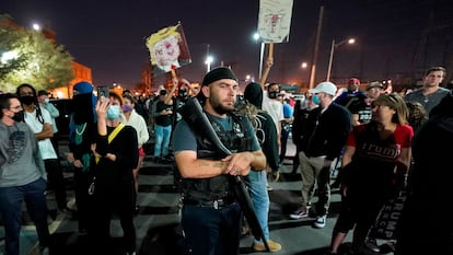 La manifestación de Phoenix había sido convocada a través de cuentas de las redes sociales vinculadas al mundo conspiracionista. Alrededor de las ocho de la tarde (hora local) del miércoles, unas 200 personas se concentraron en el centro de la ciudad con todo tipo de parafernalia trumpista para pedir que se contaran sus votos. Dentro del edificio, los trabajadores hacían exactamente eso, contar votos. El escrutinio de Arizona es uno de los cinco que han mantenido al país en vilo, pues en cualquier momento se podía certificar allí una victoria del demócrata Joe Biden que acabara con la incertidumbre.