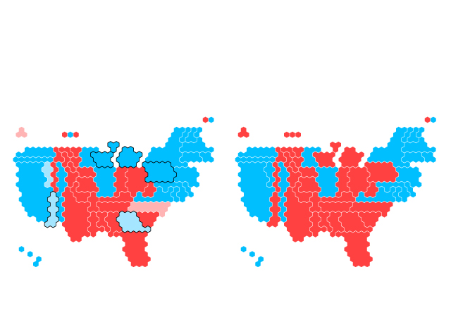 Una forma de ver esa continuidad es fijarnos en el resultado condado a condado. En la enorme mayoría ha ganado el mismo partido que logró la victoria en 2016. Apenas 60 se han vuelto demócratas, y solo una veintena se han girado hacia los republicanos.