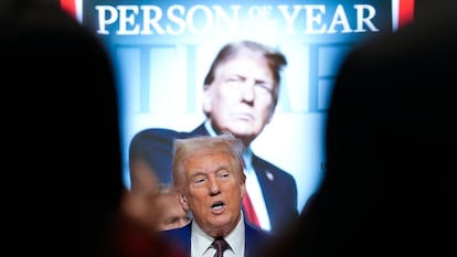 Donald Trump ha hecho sonar la campana de apertura de la Bolsa de Nueva York este jueves, coincidiendo con el nombramiento del presidente electo de EE UU como persona del año por la revista Time. El republicano, que comenzó 2024 como acusado de cuatro causas penales, fue declarado culpable de una de ellas —el caso Stormy Daniels— y sobrevivió a dos intentos de atentado durante la campaña electoral, se corona así como el protagonista indiscutible de un ciclo electoral e informativo inédito. Un acto, en el corazón del capitalismo mundial, rico en simbolismo para un líder que con frecuencia utiliza el mercado de valores como indicador del éxito de sus políticas económicas, y que reivindica su anterior experiencia como gran empresario para asegurar la eficacia de su gestión como político.