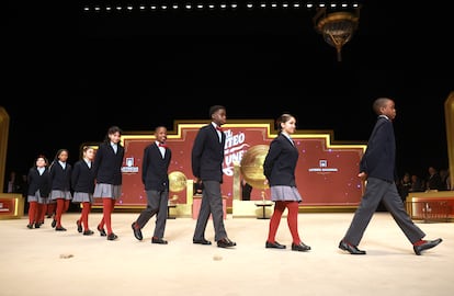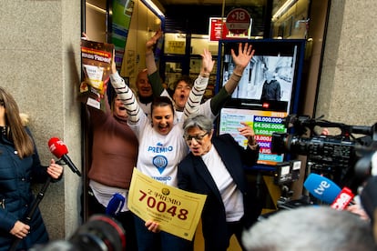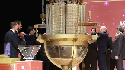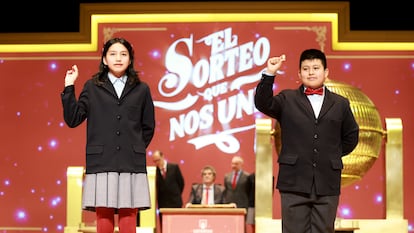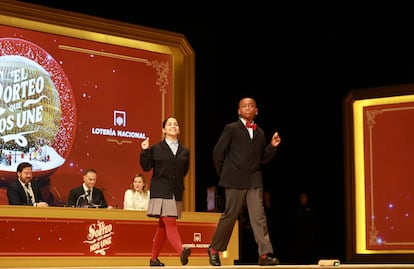 Alba Yadira (a la izquierda) e Italy Andrea Blanco cantan el primer permio, con el número 79432.Pablo MongeSamanta y Ángel cantan el segundo premio, el 700048, durante el Sorteo Extraordinario de Navidad.Pablo MongeEmpleados de la administración de la calle Barquillo de Madrid celebran la venta integra del segundo premio, el 70048.Una de las empleadas de la administración de la calle Barquillo de Madrid celebra la venta del segundo premio.Piero Rai y Alisce cantan el 78477, uno de los cuartos premios. Pablo MongeResponsables de la administración La Caprichosa de Toledo celebran emocionados la venta del 78477, un cuarto premio. JUANMA JIMÉNEZ/EUROPA PRESS (JUANMA JIMÉNEZ/EUROPA PRESS)Un niño del Colegio de San Ildefonso se limpia el sudor durante el sorteo.Eduardo Parra (Europa Press)Vista general del escenario del Teatro Real durante la celebración del Sorteo Extraordinario de Navidad. Chema Moya (EFE)Los niños y niñas de San Ildefonso entran en el escenario del Teatro Real.Pablo MongePersonal de Loterías y Apuestas del Estado muestra las bolas de los premios antes del inicio del sorteo.Pablo MongeTrabajadores de Loterías y Apuestas del Estado introducen las bolas con los números en el tambor durante los preparativos para el inicio del sorteo.Pablo MongeUn asistente, disfrazado de San Fermín, muestra décimos del sorteo en el interior del Teatro Real de Madrid.Pablo MongeAsistentes se toman fotos tras abrirse las puertas del Teatro Real antes del inicio del sorteo.Chema Moya (EFE)Asistentes en el Teatro Real esperan el inicio del sorteo.Pablo MongeAficionados al sorteo esperan en el exterior del Teatro Real de Madrid para el inicio del sorteo anual.Manu Fernandez (AP)