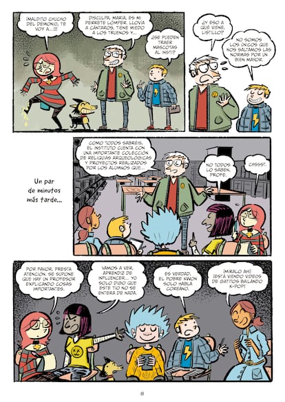 Compartir tiempo con adolescentes en el aula, asegura, le aporta “mucha frescura” en su trabajo como autor de cómic. Y a los jóvenes, siempre en el punto de mira desde tiempos de Sócrates, él los defiende con uñas y dientes. “Yo no podría dedicarme a la docencia si no confiara en los chavales que tengo delante”, afirma el autor, que se muestra totalmente en contra de los discursos catastrofistas sobre la adolescencia: que si “tienen menos nivel educativo que antes”, que si “cada vez van a peor”… “Este tipo de afirmaciones quizás tienen mucho que ver con esa idea generacional de que cualquier tiempo pasado fue mejor. Yo comparto mucho tiempo con adolescentes y lo que veo es que tienen mucho potencial y que no les falta cultura del esfuerzo. ¡Claro, lo que no les puedes pedir es que rindan como un adulto!”.