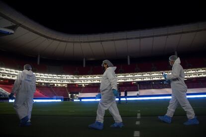 Así un total de 5.800 espectadores podrán ingresar al recinto. Será en grupos de dos, no se permitirá la entrada de menores de 12 años, será obligatorio el uso de cubrebocas durante todo el partido, no habrá taquillas abiertas —los billetes se comprarán online— ni grupos de animación. Tampoco puestos de bebida abiertos “para evitar las filas”: “La comida se llevará al asiento”, ha anunciado Pablo Lemus, presidente municipal de Zapopan, donde está ubicado el estadio. “Llevamos meses preparándonos”, ha dicho.