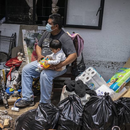 La cerrada donde vive Salmerón es la misma que la de Alejandra Pineda. Allí residen cinco familias que este lunes enfrentaron la naturaleza en toda su fuerza. En el Estado de México más de 400 viviendas quedaron bajo el agua en una decena de municipios. Juana Díaz y su marido, Francisco Romero, que viven en la colonia El Calvario, cuentan que a uno de sus vecinos se lo llevó el agua, aunque quedó enganchado en el tejado y pudo salvarse, “por suerte”, repiten. Ellos tampoco pudieron rescatar ningún mueble ni electrodoméstico. Hasta los documentos han quedado cubiertos de lodo. “Habrá que empezar de cero, lo más importante es que los niños están bien”, dice Díaz. Pudieron salvarse, asegura, porque cuando comenzó a entrar el agua toda la familia se subió a los muebles. “Esto era un río, daba mucha impotencia”, agrega Romero.