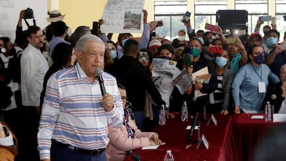 El presidente Andrés Manuel López Obrador volvió a minimizar este lunes los riesgos a los que se expone durante sus giras por México, tras la intromisión el domingo de forma violenta de un grupo durante uno de sus viajes, en la localidad de Huauchinango, en el Estado de Puebla, que exigieron al mandatario ayudas tras la destrucción causada por los huracanes y tormentas que han afectado la zona. “Son gajes del oficio”, ha justificado el presidente en su conferencia matutina, que ha realizado desde Puebla. “Imagínense cuántos años llevo así, no solo enfrentando portazos, sino situaciones más delicadas y no pasa nada, la gente es muy responsable y el que lucha por la justicia no tiene nada qué temer; además, yo tengo mi ángel de la guarda, que es el pueblo de México”, ha dicho López Obrador.