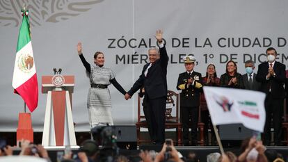 Andrés Manuel López Obrador se ha volcado este miércoles al cumplirse tres años de su mandato en un alegato de las Fuerzas Armadas y del avance de su participación en la vida pública de México. El presidente ha defendido ante un Zócalo repleto de decenas de miles de simpatizantes la cesión de poder al Ejército, que ya controla las obras más emblemáticas impulsadas por el Gobierno como el Tren Maya, el aeropuerto internacional Felipe Ángeles o la refinería de Dos Bocas y tendrá en sus manos la distribución de los medicamentos a partir de enero. Para el mandatario, estas competencias contribuyen a “dejar atrás la desconfianza entre civiles y militares”. “Las Fuerzas Armadas, no lo olvidemos, nacieron con la Revolución Mexicana, no son un Ejército de élite, no pertenecen a la oligarquía, los soldados son pueblo uniformado”, ha proclamado López Obrador al expresar su reconocimiento a las Secretaría de Marina y la de Defensa Nacional.
