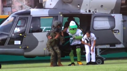 Utilizan helicóptero de la Marina para trasladar a mascota deportiva en México