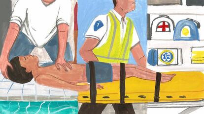 Apenas unos segundos después de apoyarse en los separadores de los carriles, el cuerpo de Abner se encuentra “aparentemente” inconsciente, señala la Fiscalía. Pasa un minuto. La instructora se da cuenta de la situación. Se mete al agua, lo carga y lo lleva al extremo de la piscina. A las 9.17 llega el coordinador de natación, que coloca el cuerpo del niño en el suelo.