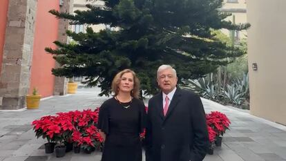 El presidente Andrés Manuel López Obrador ha felicitado hoy la Navidad junto a su esposa, Beatriz Gutiérrez Müller, en un escueto video en el que han deseado “que mejoren los enfermos y los que están sufriendo tengan momentos de dicha, y que los pobres y los desposeídos no pierdan la fe y la esperanza en un mejor porvenir. Para eso luchamos todos, pensando en el prójimo, en los demás”, ha dicho el presidente. Ambos han recordado que estas fiestas son para la paz, y también para “cenar rico y estar con los niños y los abuelitos”. “Paz y alegría y recuerdos para los que ya no están”, ha cerrado el mensaje Gutiérrez Müller.